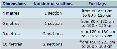 • Our flagpoles resist winds up to 70 km/h. Take flags down in inclement weather to avoid deterioration.