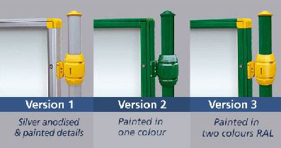 • Posts are sturdy Ø 114 steel tube with a welded domed top cap;